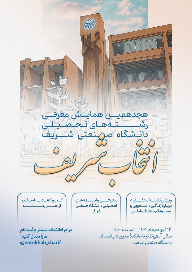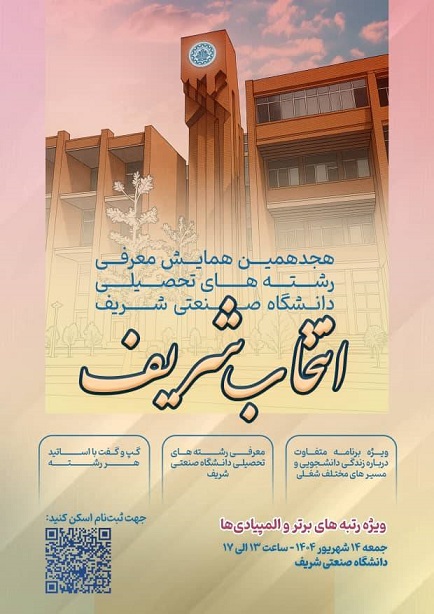 هجدهمین همایش تخصصی معرفی رشتههای فنی و مهندسی و علوم پایه با حضور استادان مجرب دانشگاه صنعتی شریف، ویژه برترینهای آزمون سراسری ۱۴۰4 برگزار میشود.